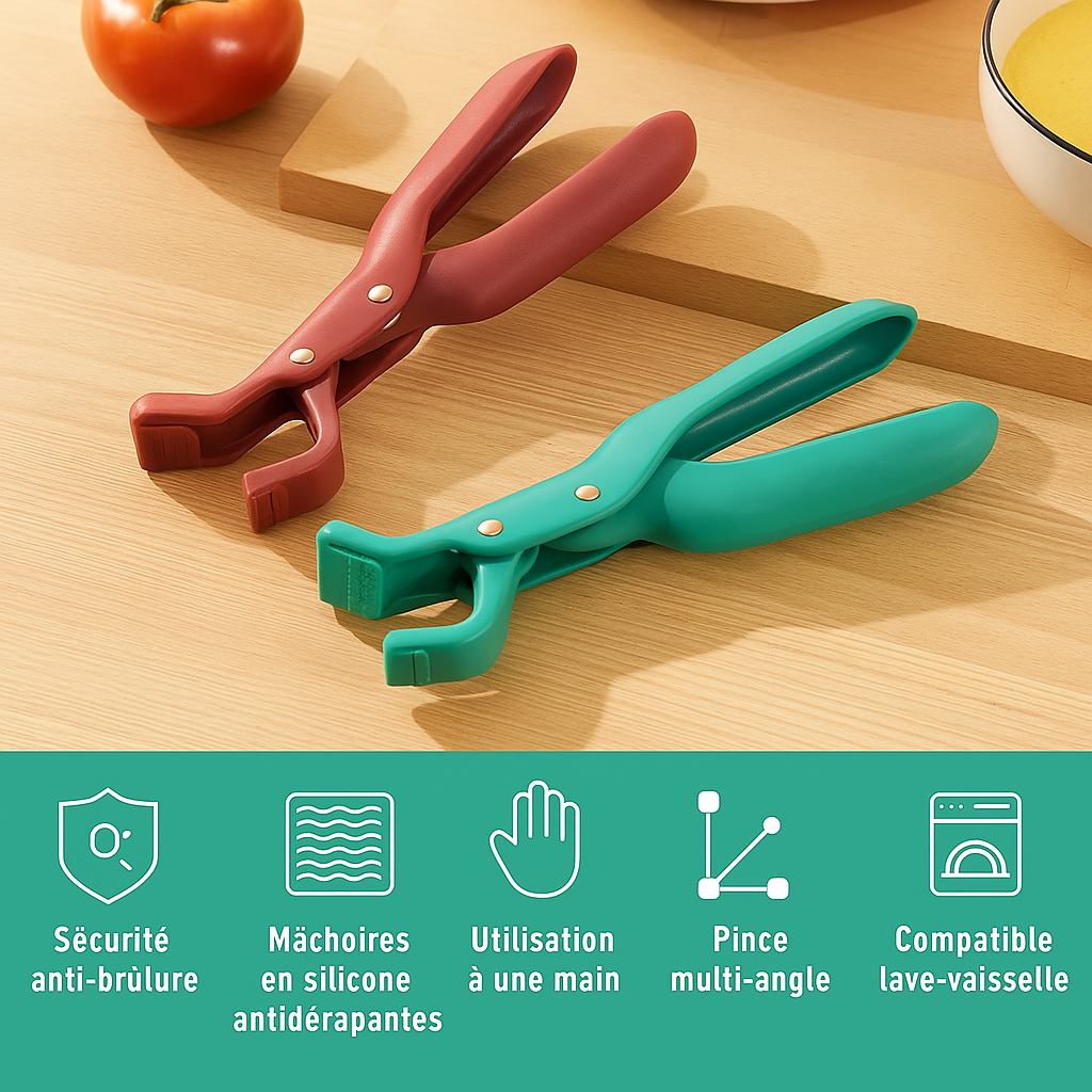 Twinsy GripâChaudâą est une pince de saisie thermo-protectrice conçue pour manipuler facilement et sans risque les plats, bols, casseroles ou moules chauds. Elle vous permet dâĂ©viter les brĂ»lures et dâattraper vos plats en toute sĂ©curitĂ©, mĂȘme directement sortis du four ou du micro-ondes.